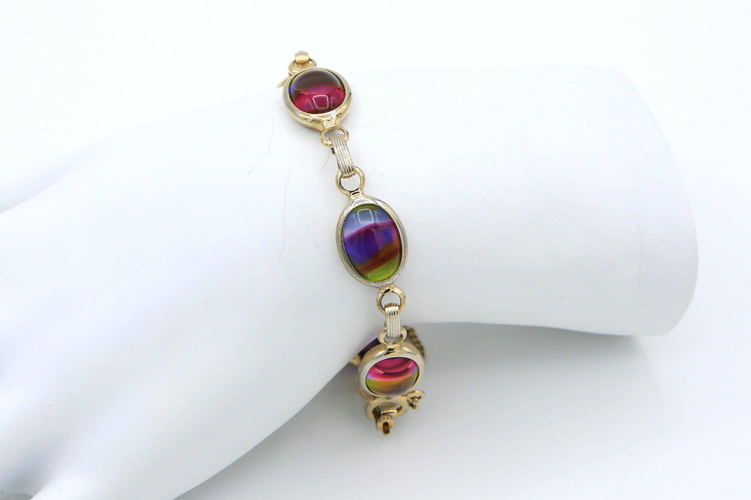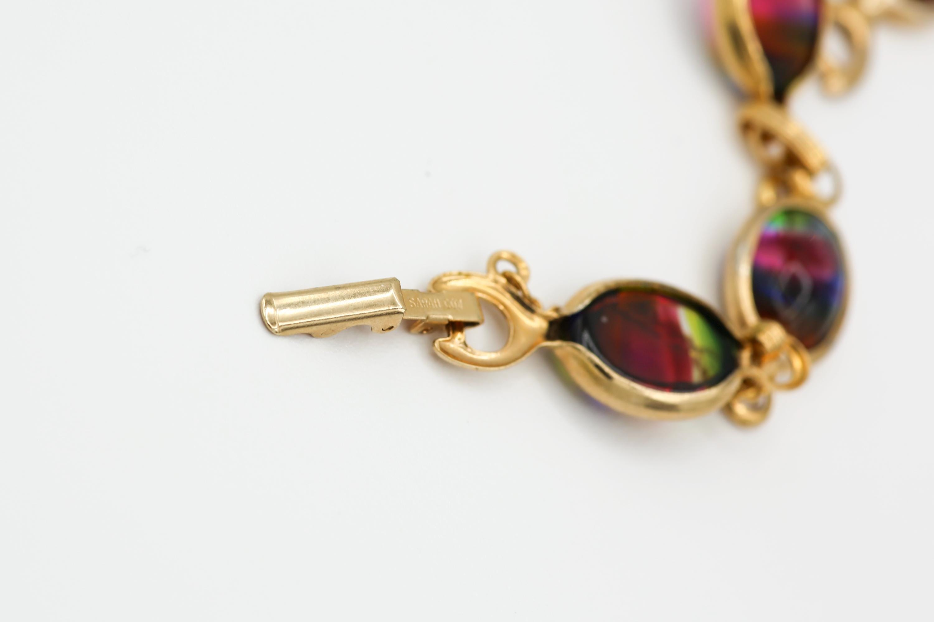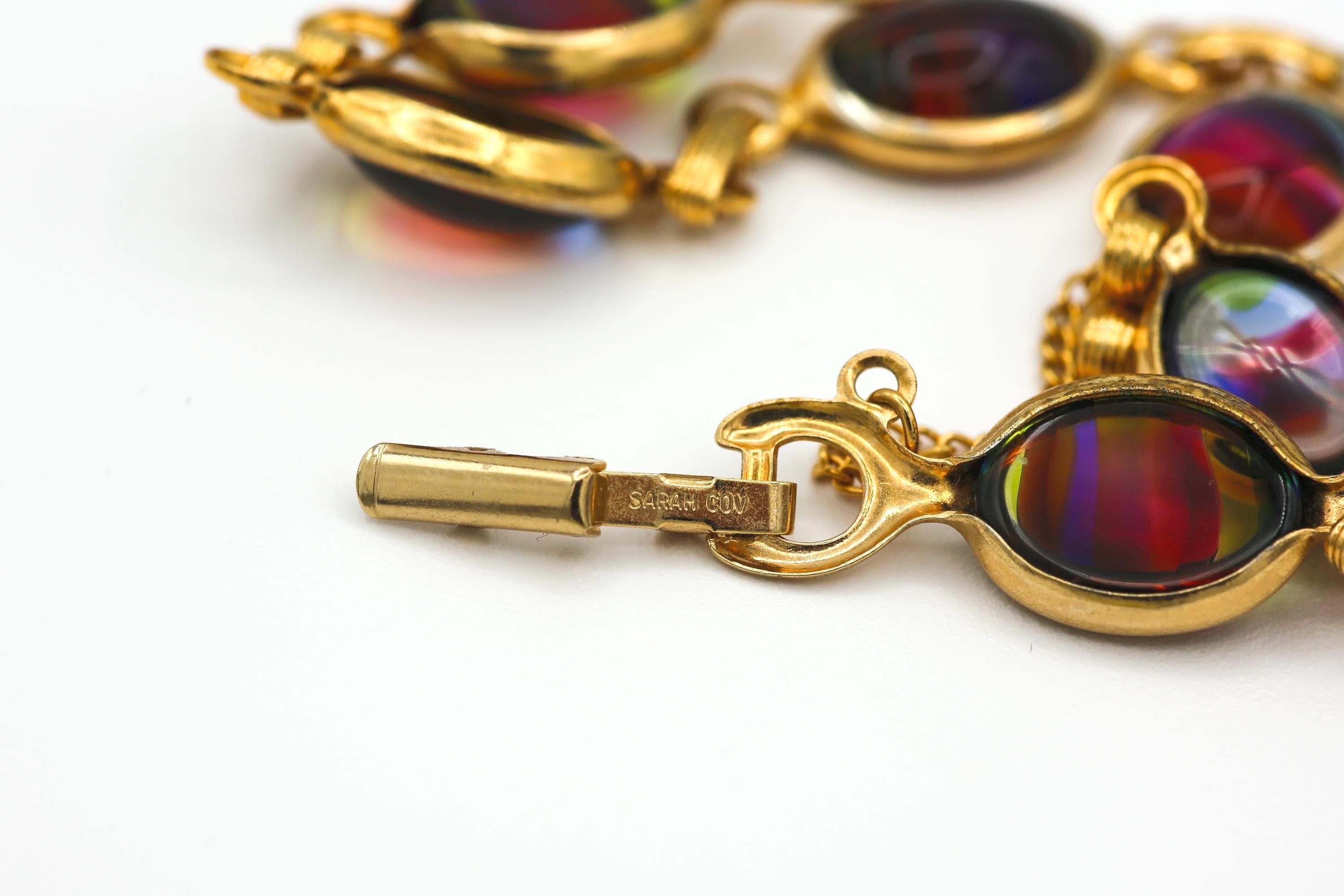 Vintage 1964 Sarah Coventry HARMONY Chain Station Bracelet Gold Tone RARE Rainbow Stones. Also has a safety chain!