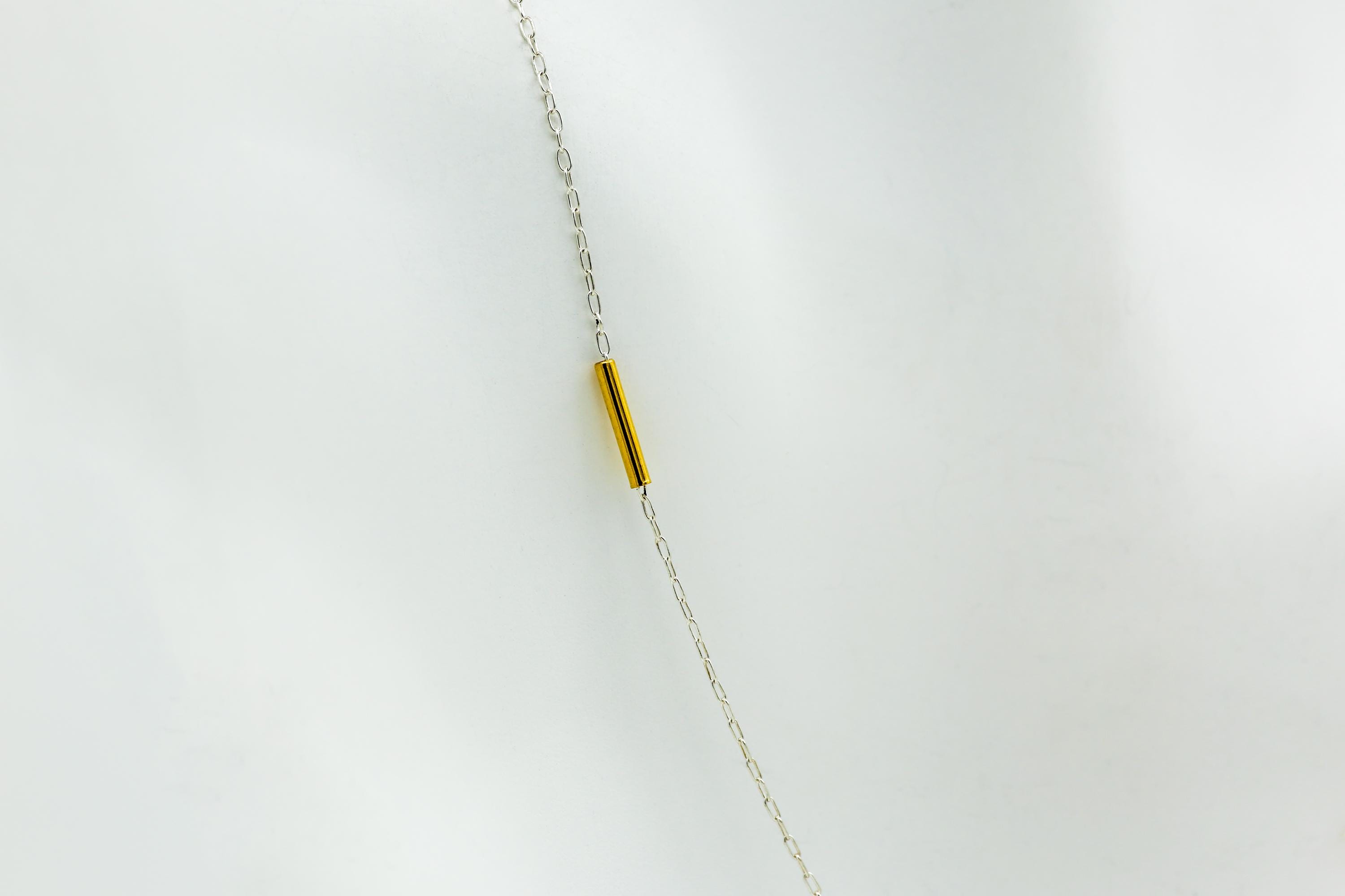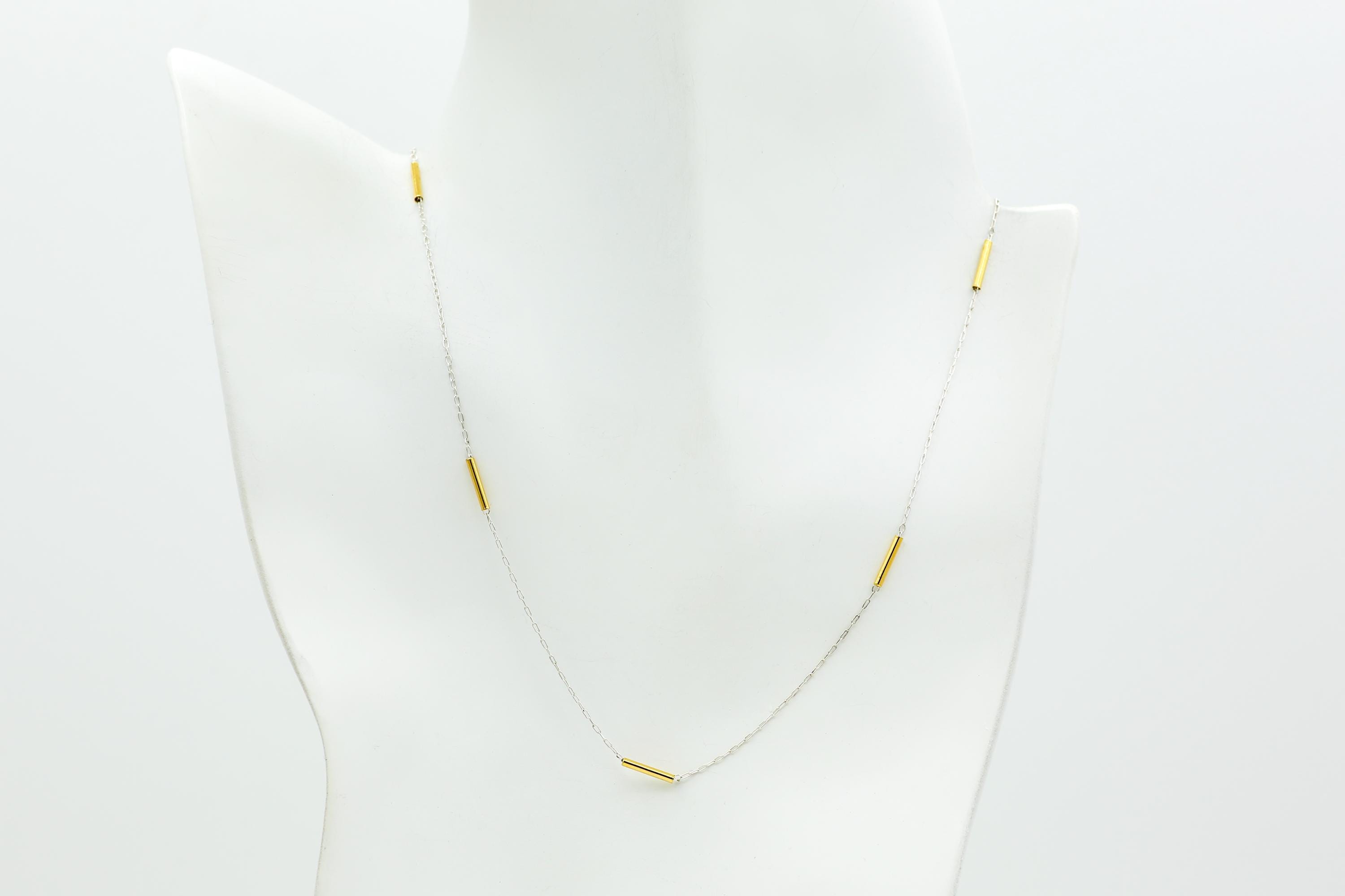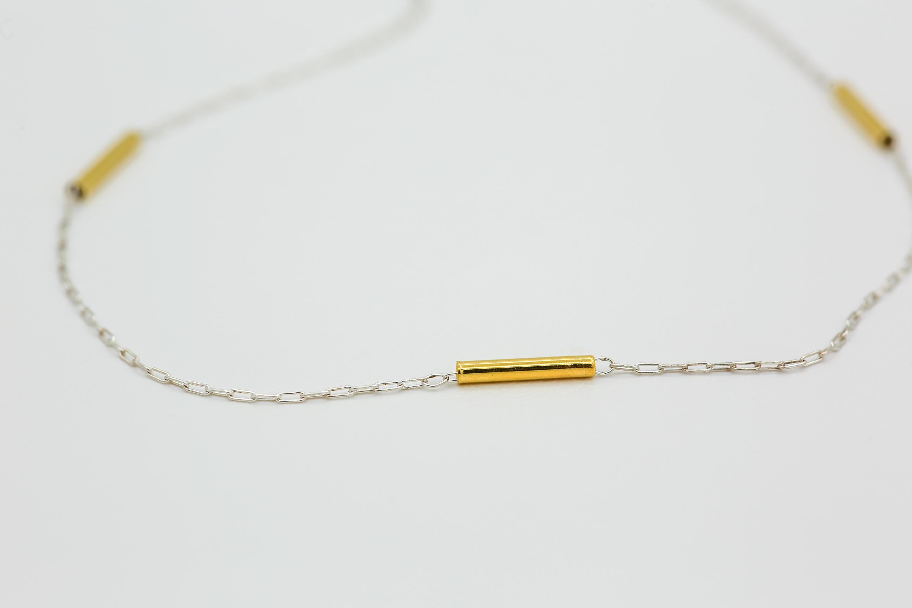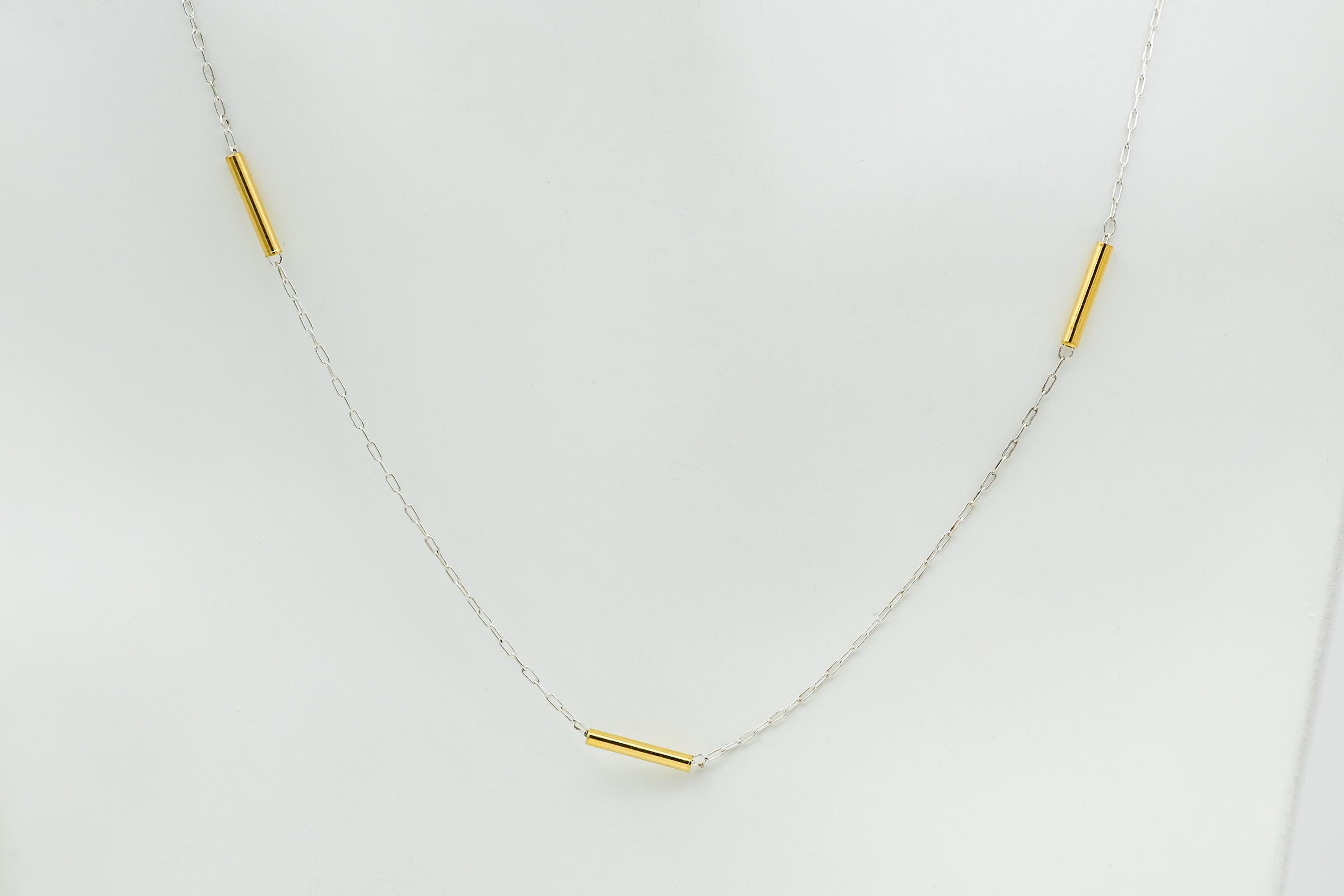 Vintage Sterling Silver Dainty Chain Necklace With Gold Tone Bar Beads NOS 925