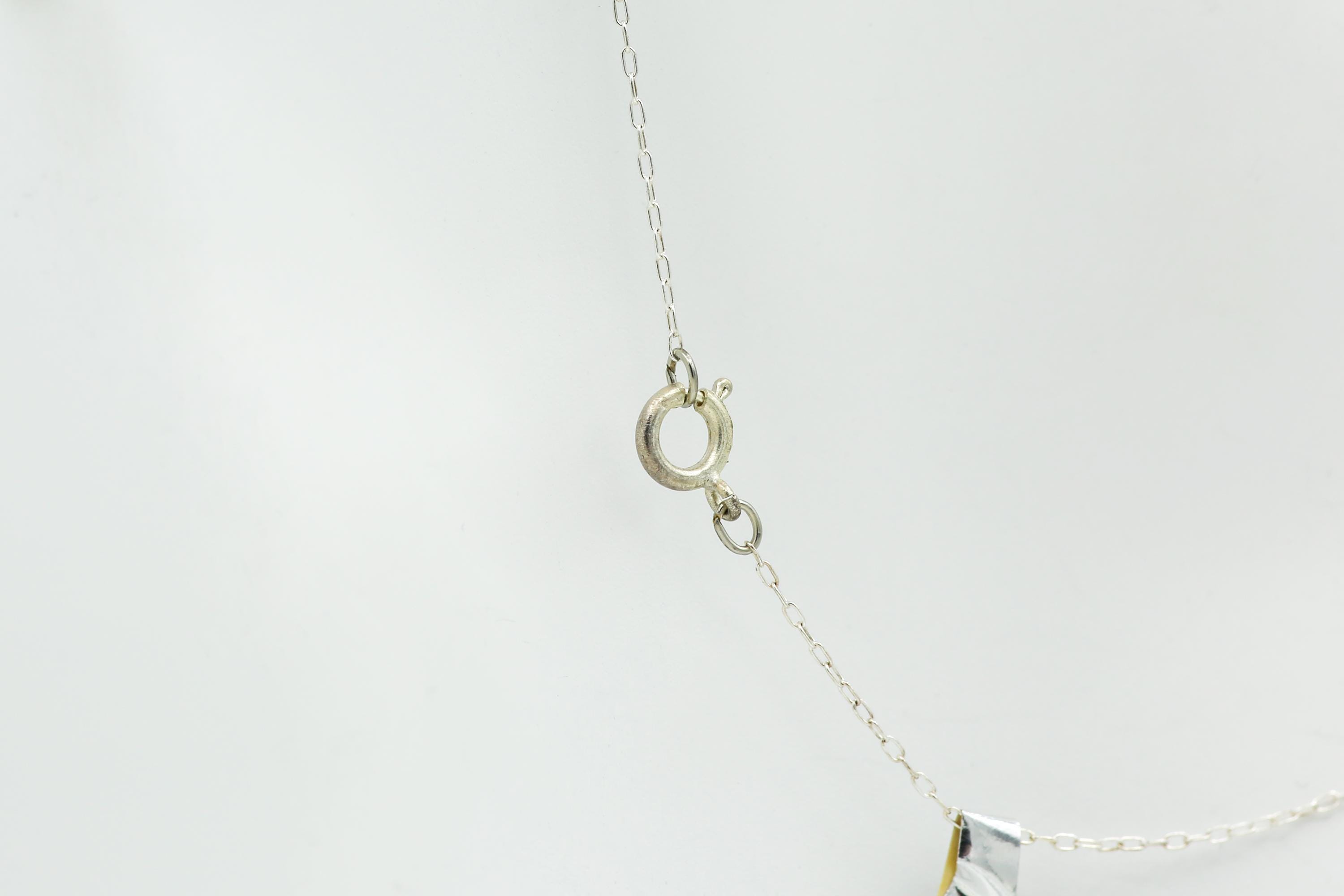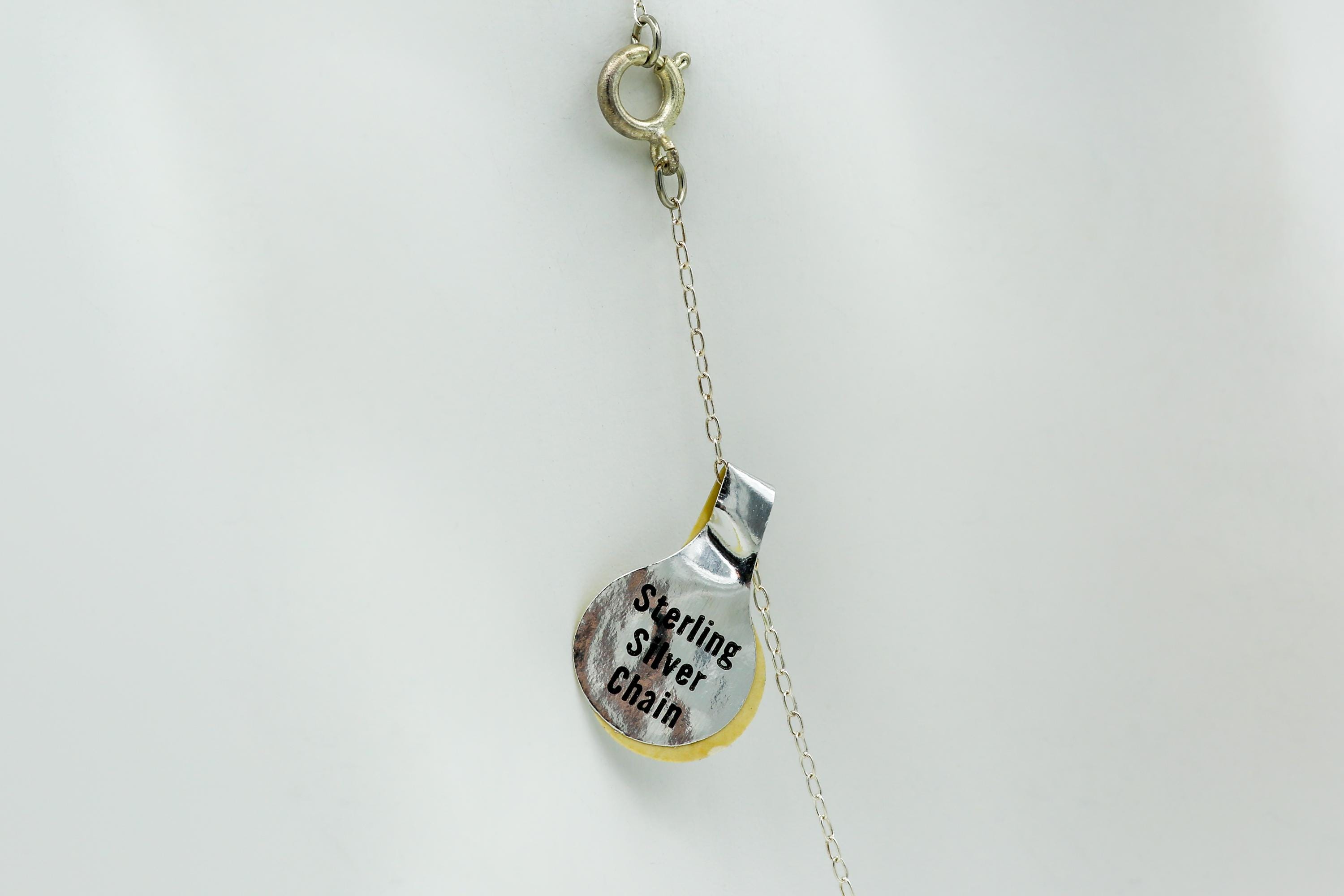 This sweet little delicate necklace consists of a very thin, dainty sterling silver chain with several gold tone bar beads. It measures about 16" long and has a spring ring clasp. It is in perfect vintage condition, has never been worn and even has its original chain tag reading "Sterling Silver Chain".