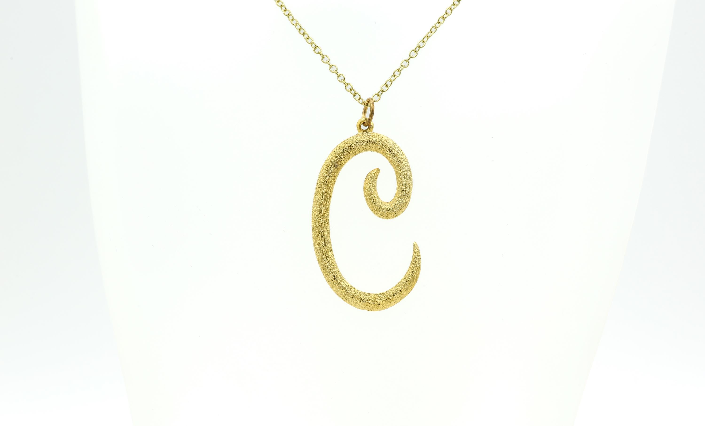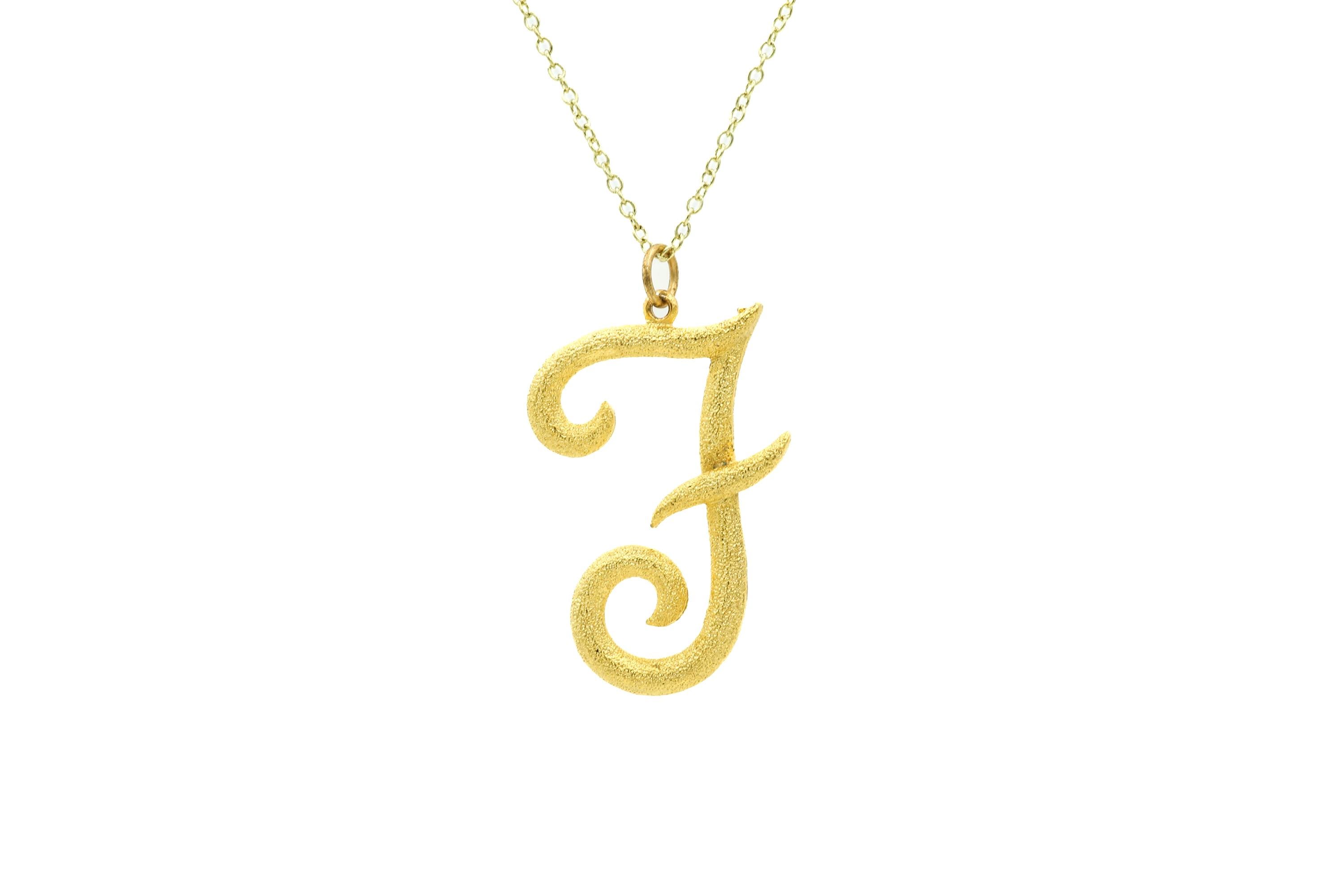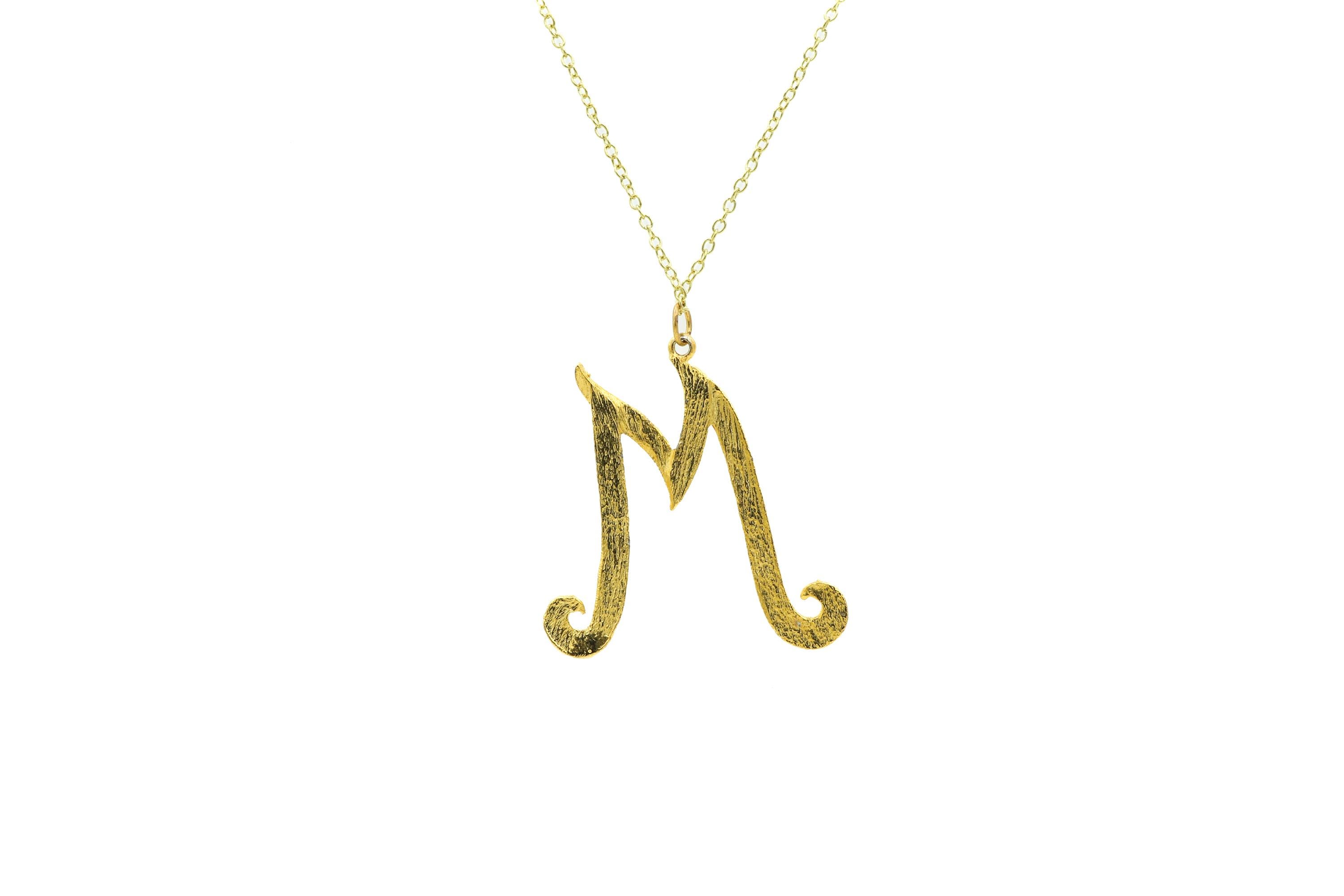 Big, beautiful letter "M" pendant necklace! This necklace is comprised of a very large (about 1-3/4") shiny gold tone vintage initial pendant and a vintage 18" gold tone chain. The pendant has a nice textured finish that appears to sparkle! Although these are new old stock, some areas of the letter might contain slight wear (check photos).