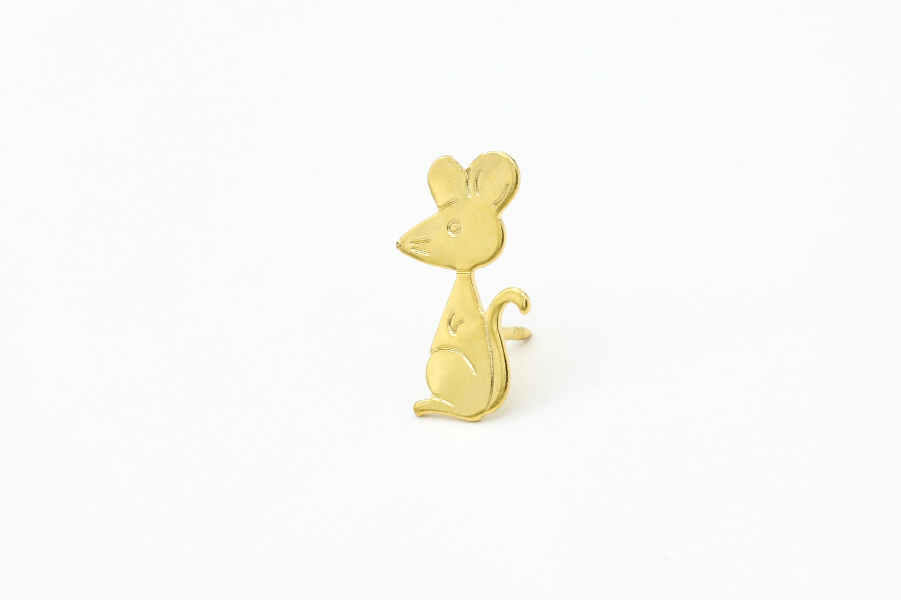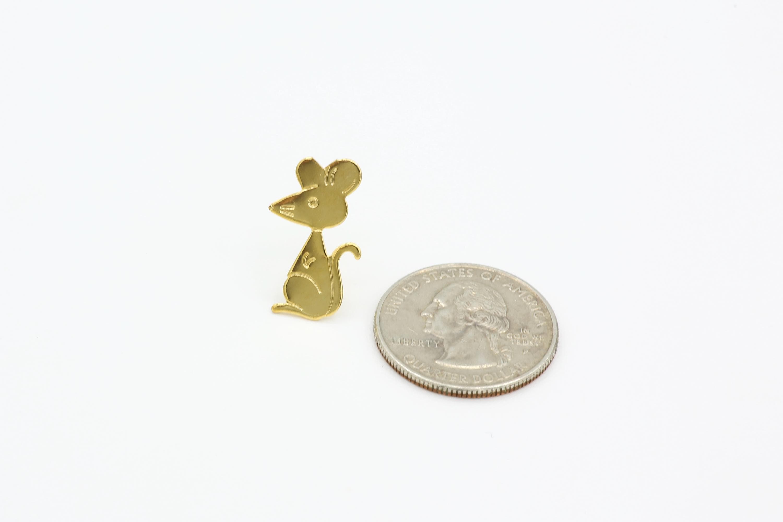 Mod Mouse Pin in Gold Tone Minimal Mid-Century NOS Vintage Brooch Tac Pin.