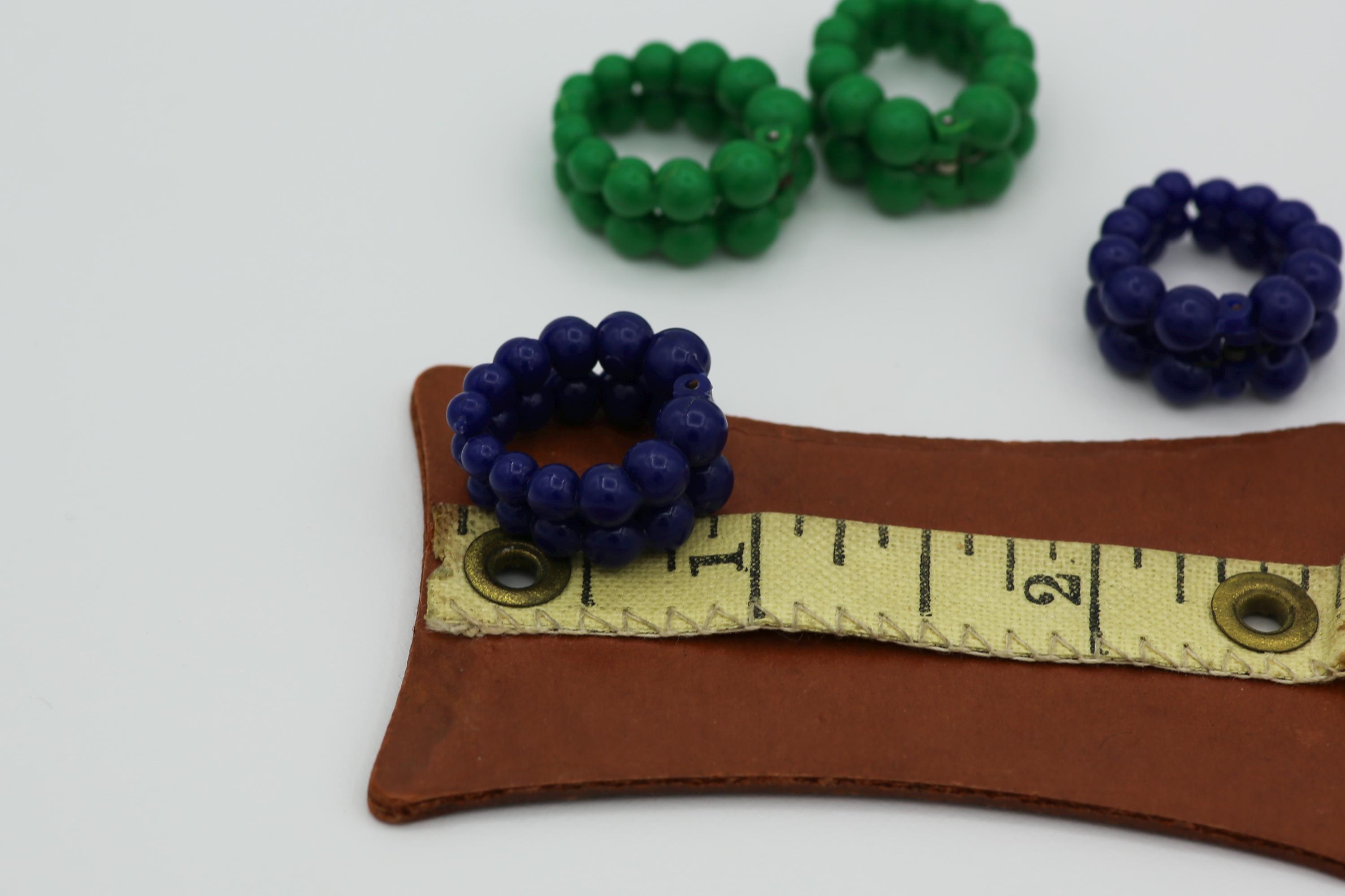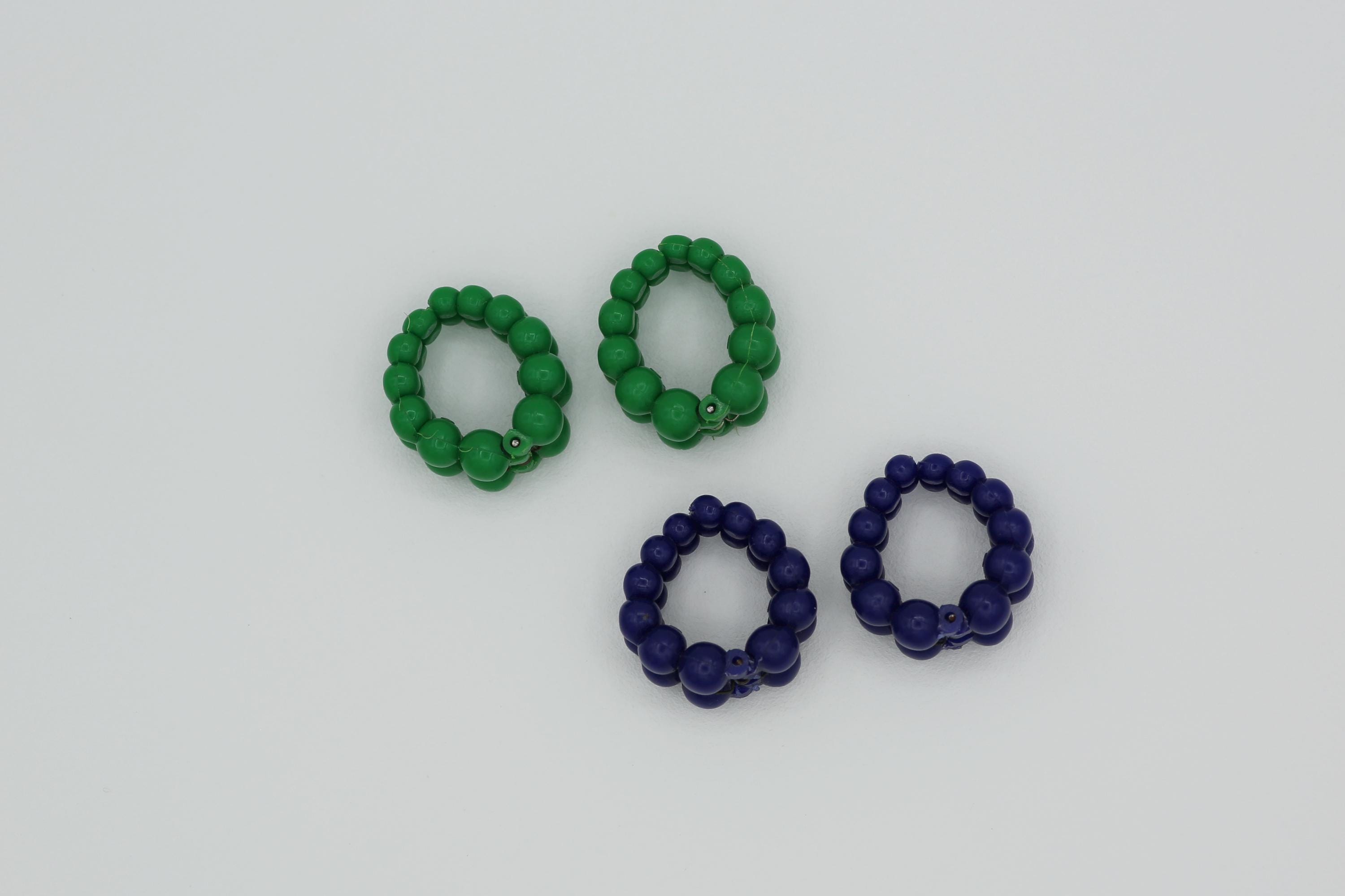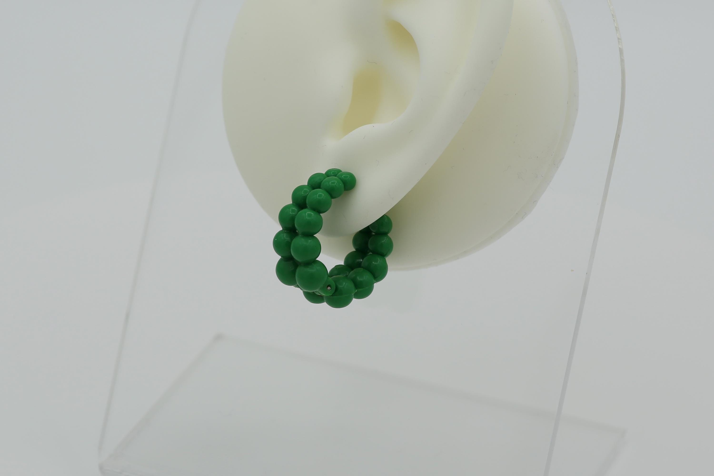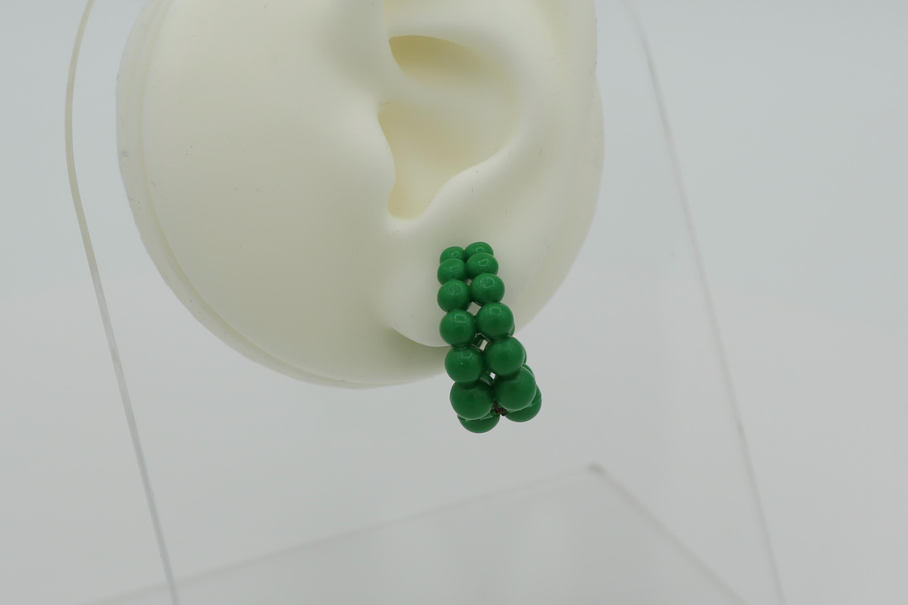 These are some of the neatest earrings I have ever come across. They are vintage unsold stock and come in your choice of green or dark blue. They appear like they are beaded, but actually have the little plastic 'beads' all molded together.