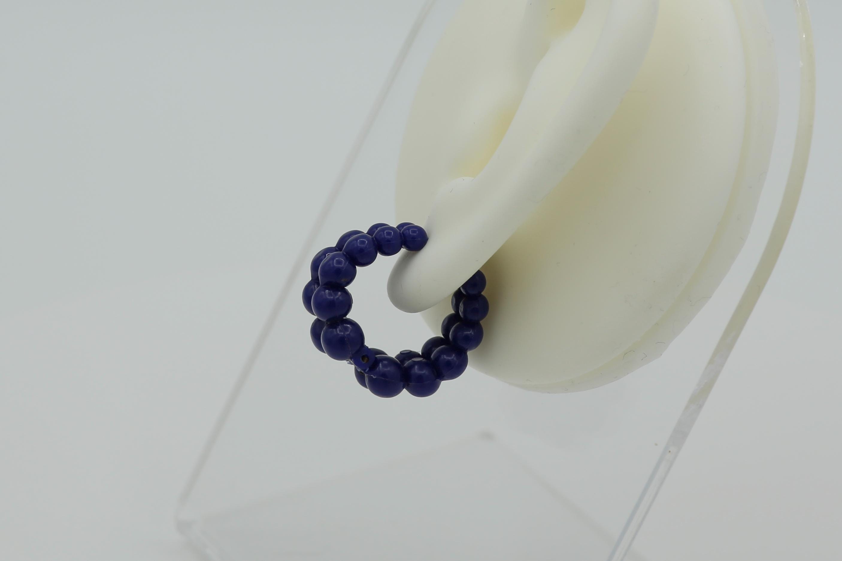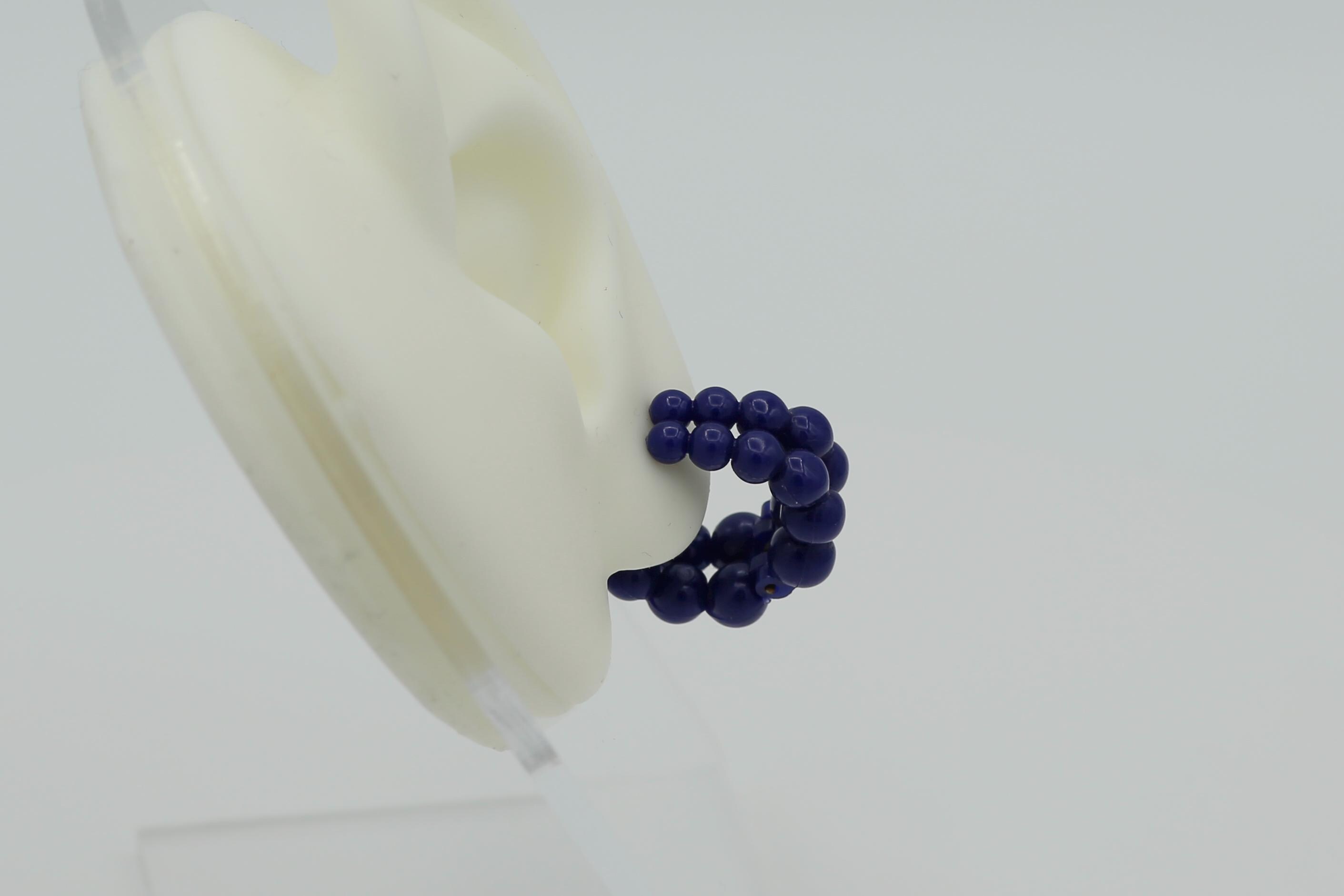 Measuring about 075" in diameter, they are hinged, with a tiny little hinge, and open to work as a type of clip on or ear cuff. And the hinge is tight enough, that they do stay snuggly on the ear lobe!