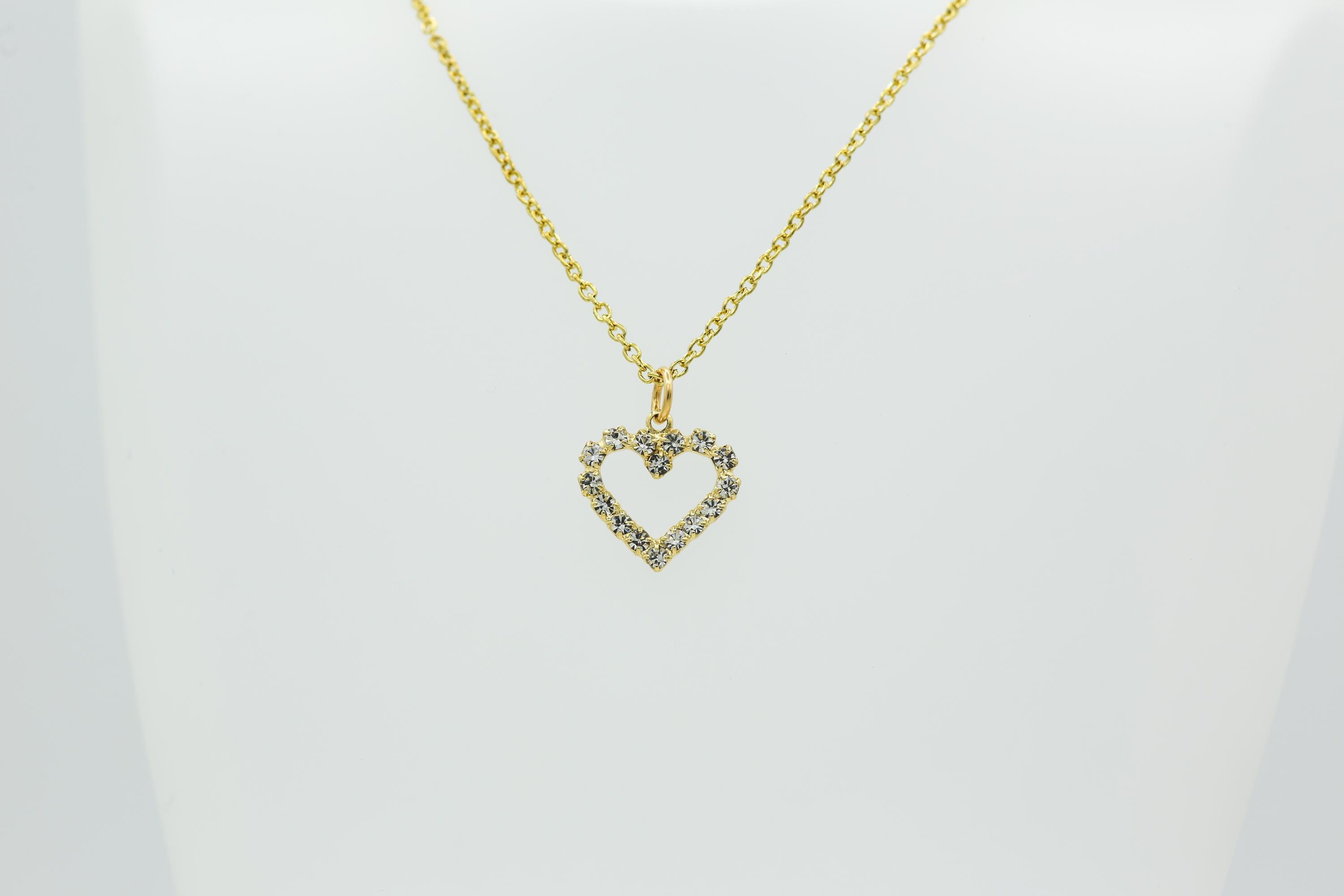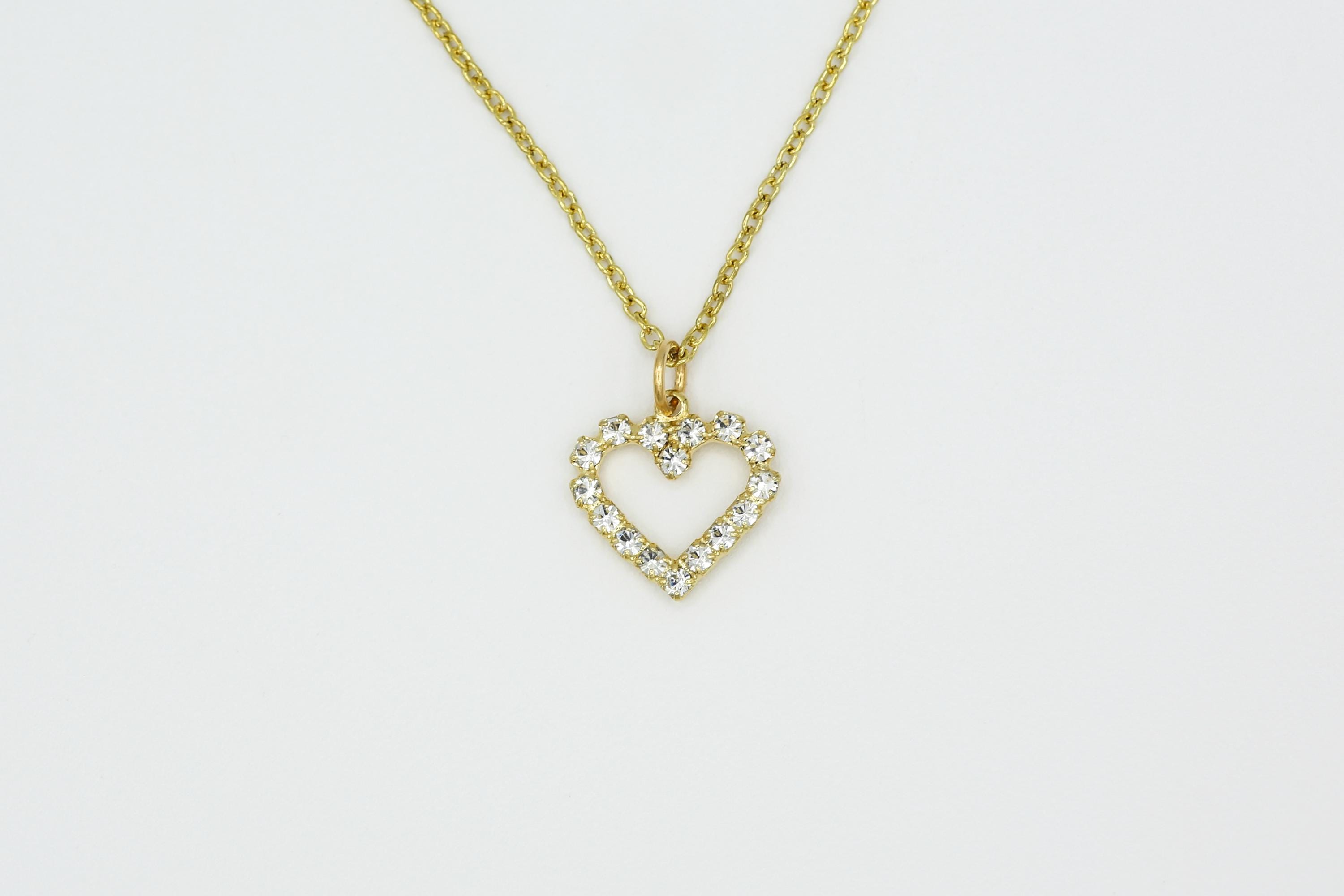 Vintage Rhinestone Heart Pendant Necklace: Gold Tone Sparkly Sweetheart NOS.