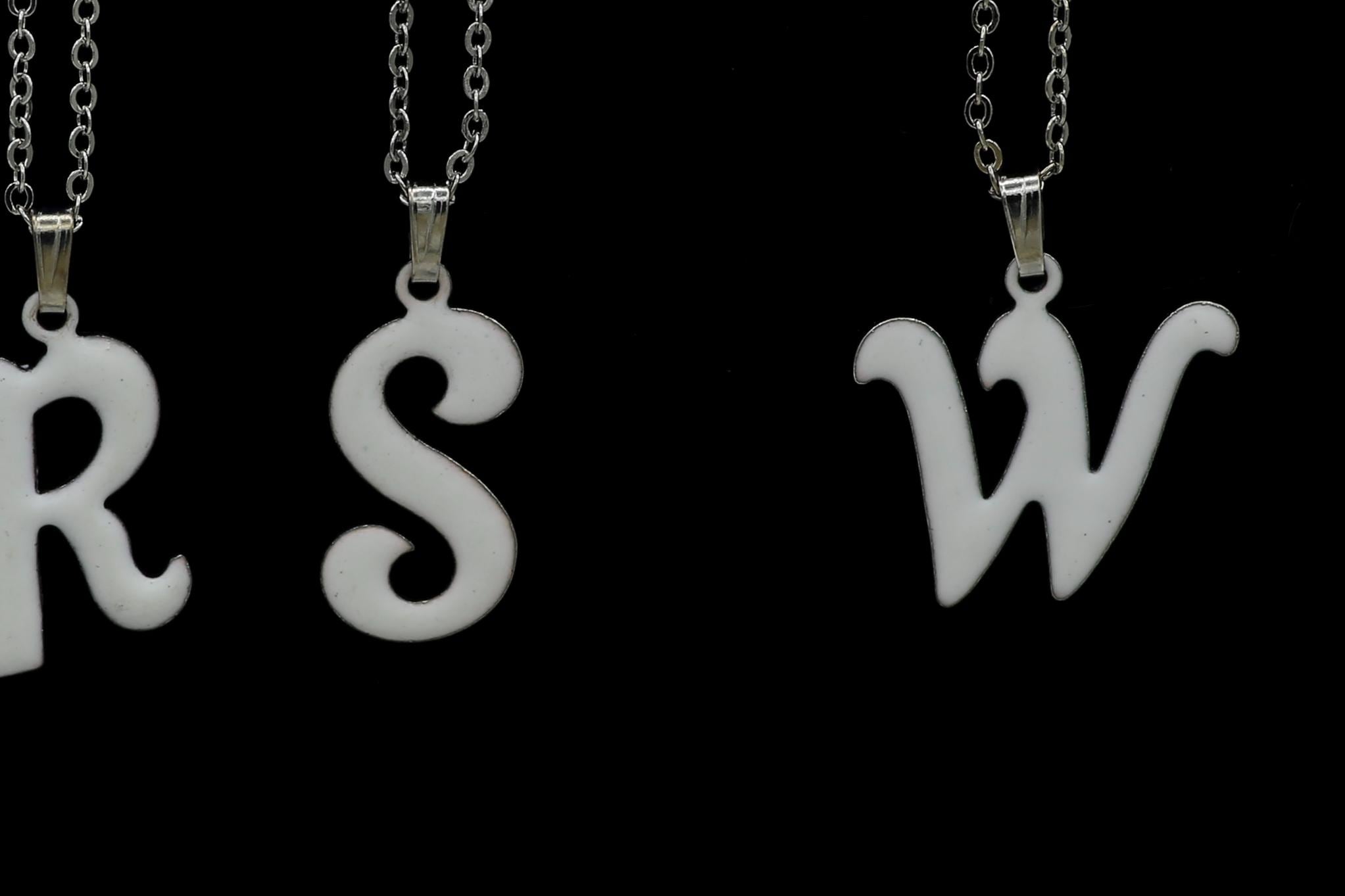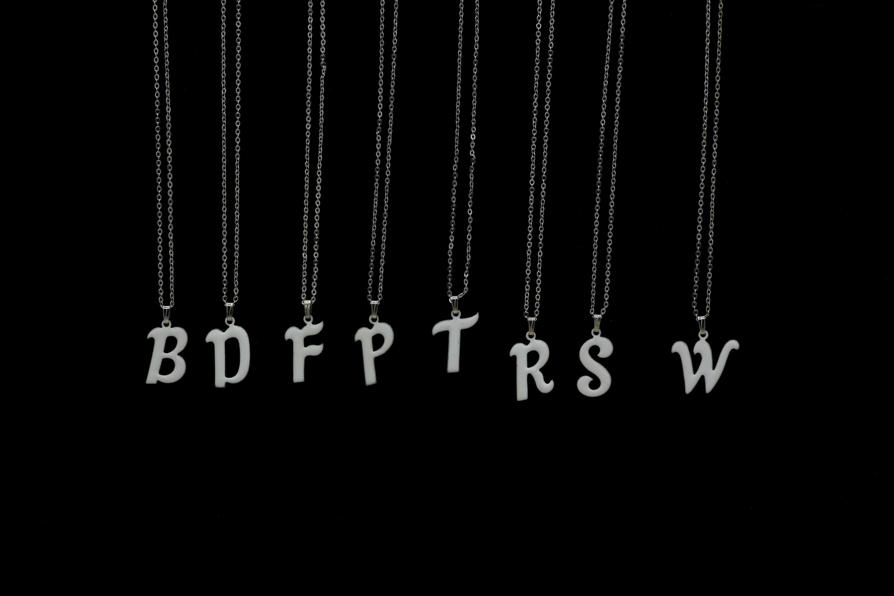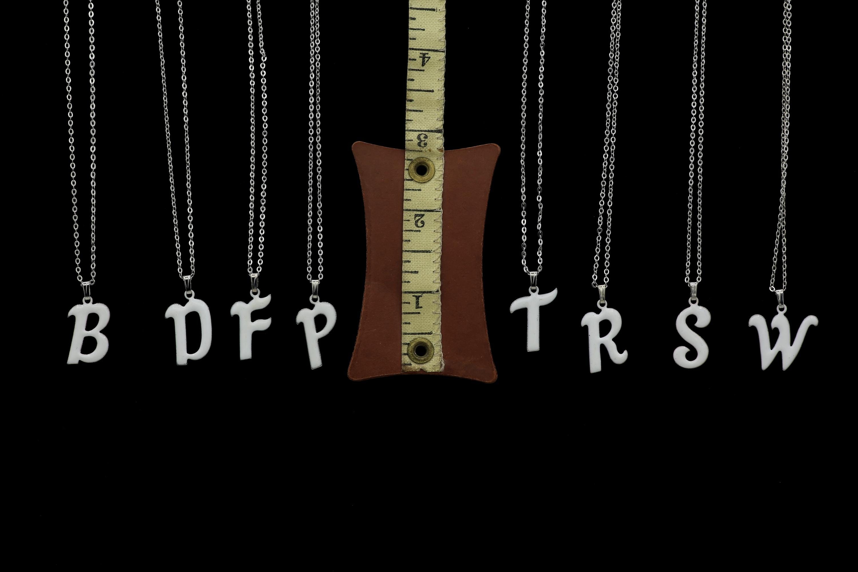 Pretty and simple white enameled metal initial pendant necklaces! Choose your letter!