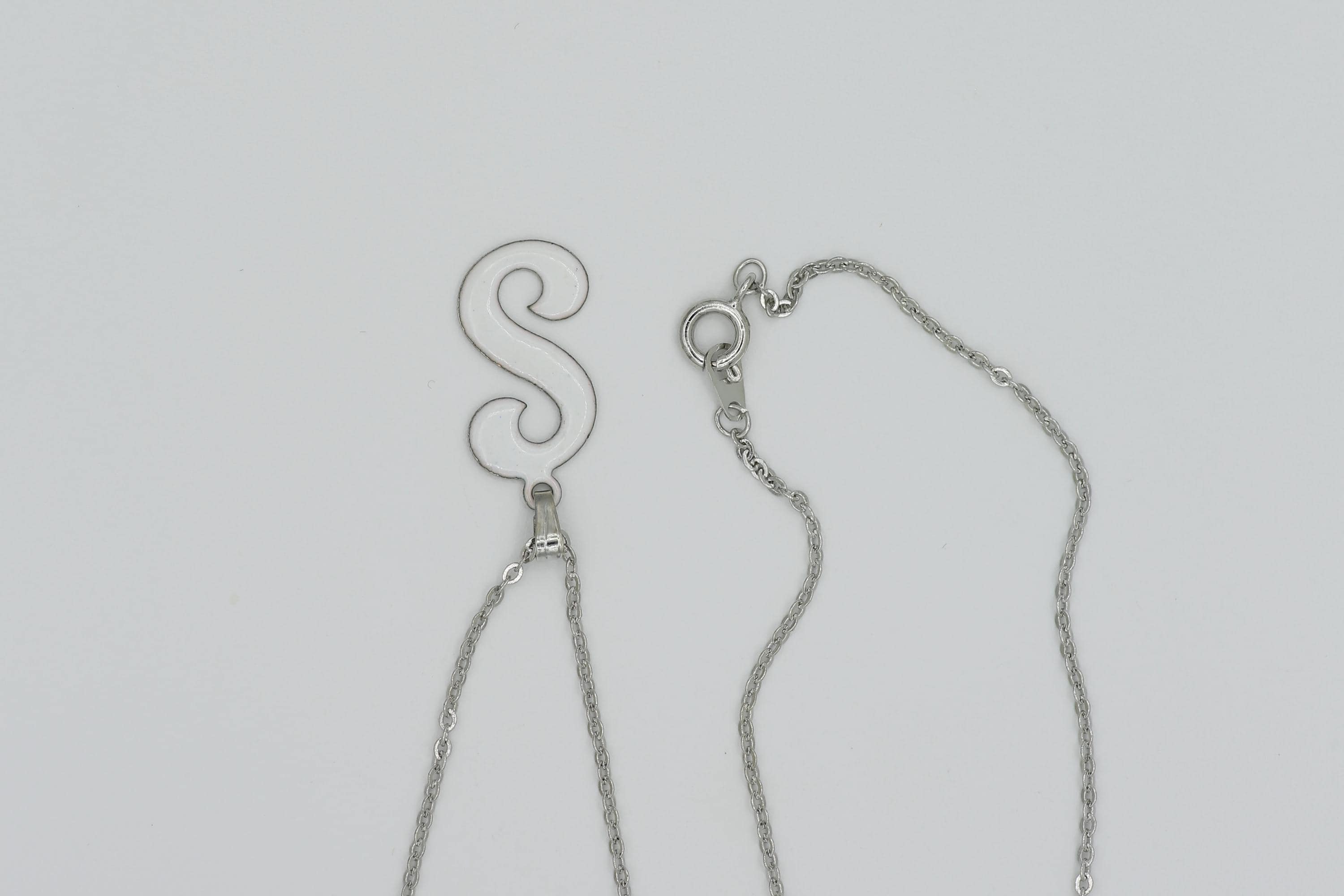Vintage White Enamel Initial Pendant Necklace: Silver Tone Chain NOS Metal Letter Charm.
