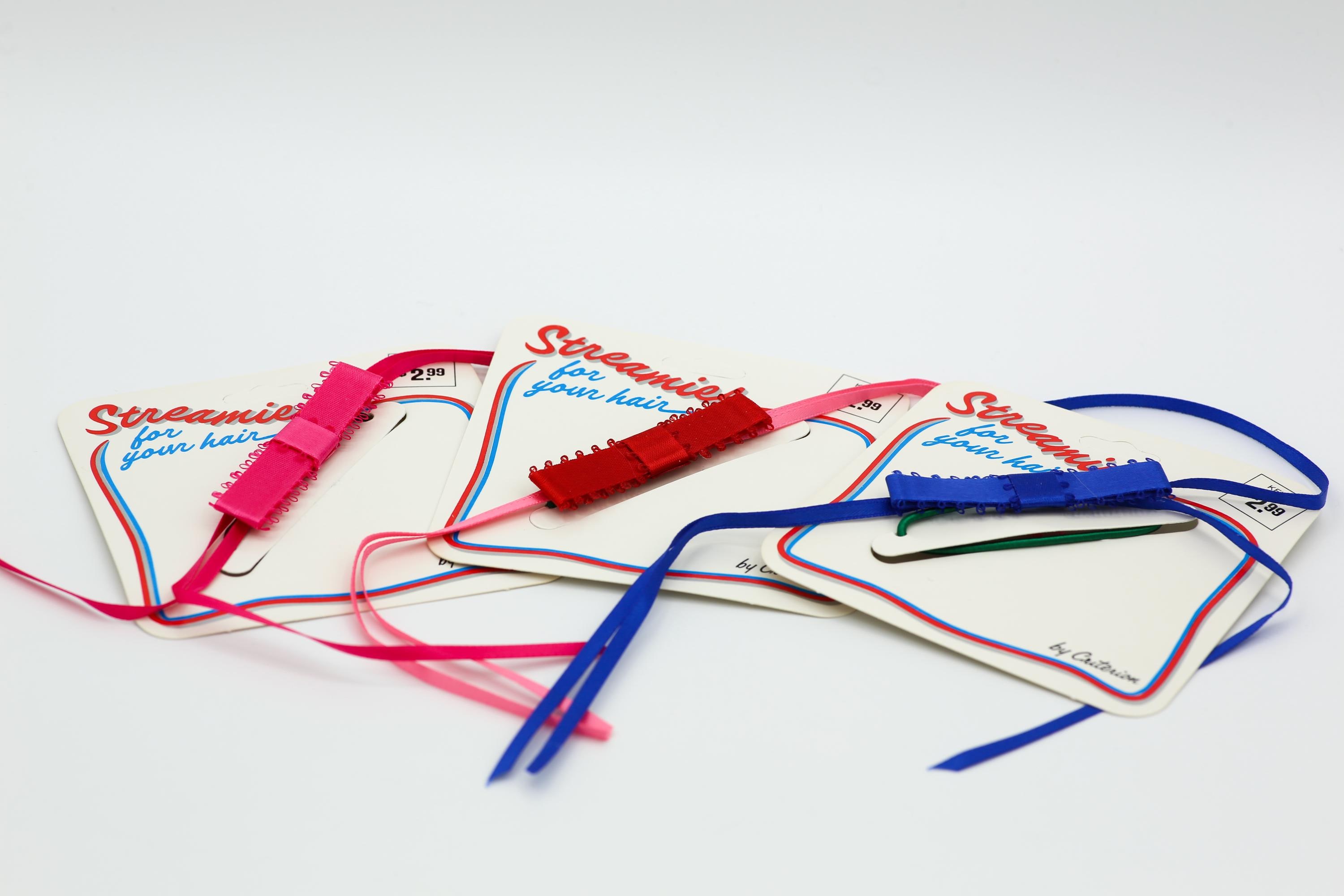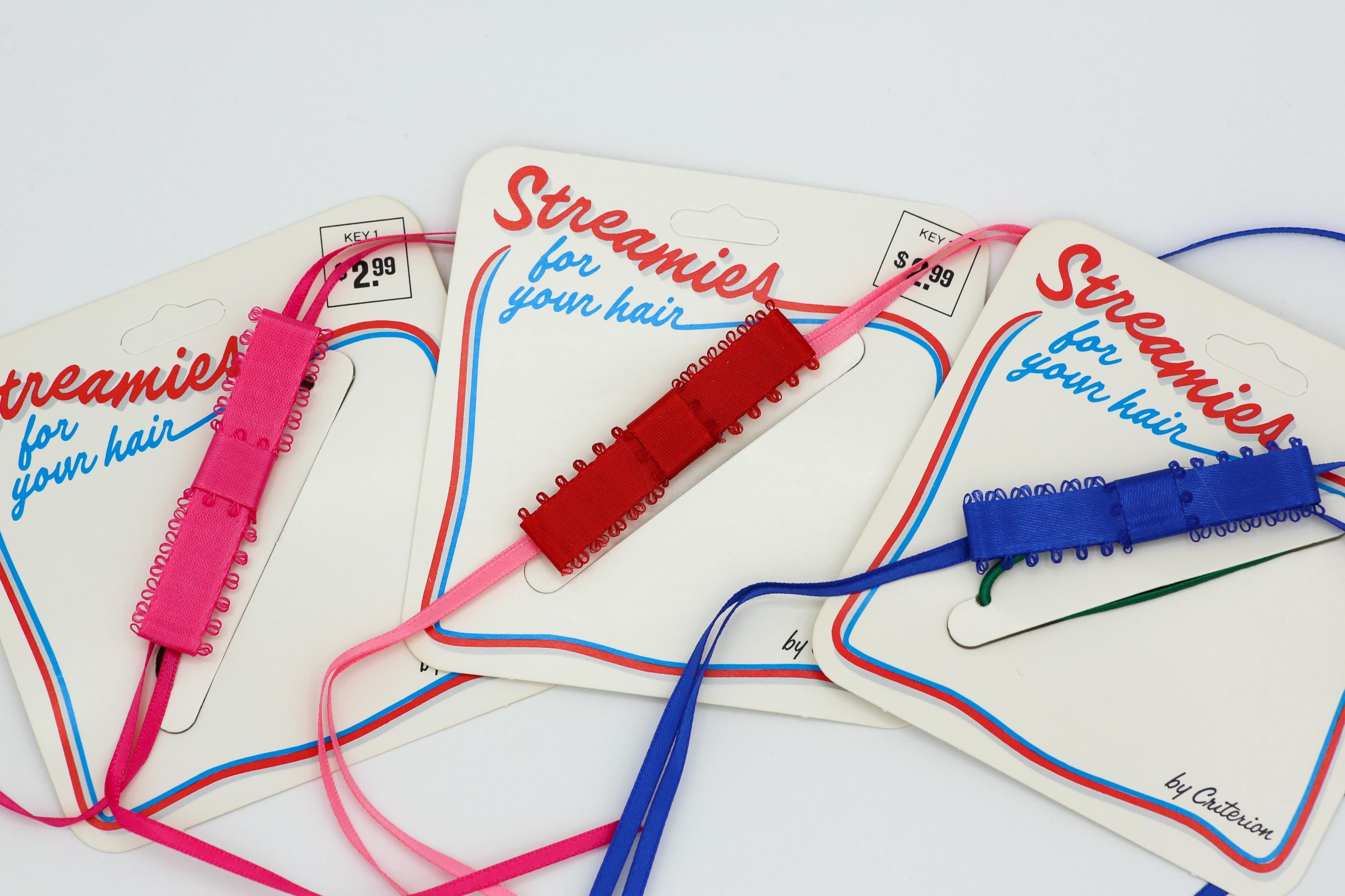 Vintage NOS Streamies For Your Hair: Criterion Ponytail Holders With Ribbon Accessories.