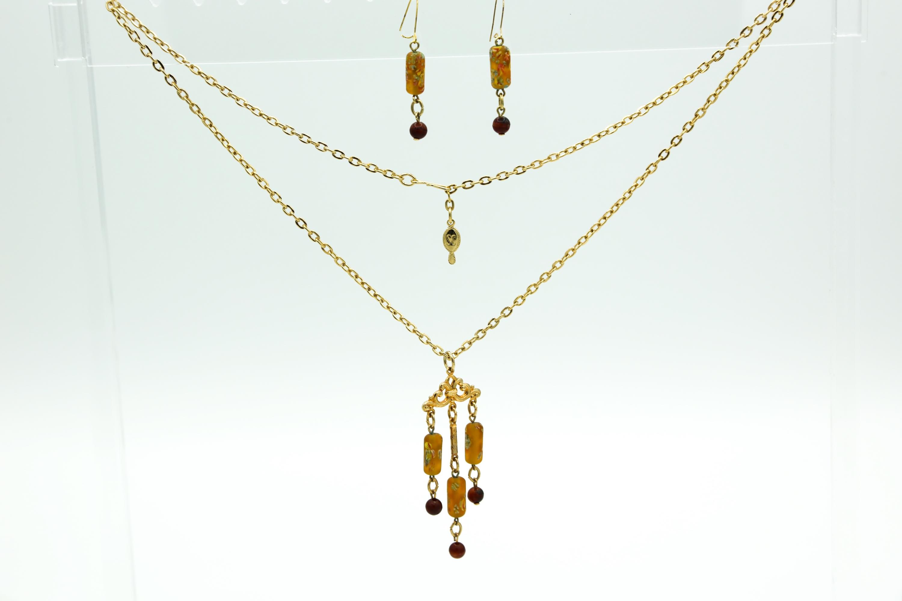 Vintage Sarah Coventry 1975 Taffee Tones Set | Beaded Necklace | Dangle Drop Earrings | Gold Tone | Excellent Condition