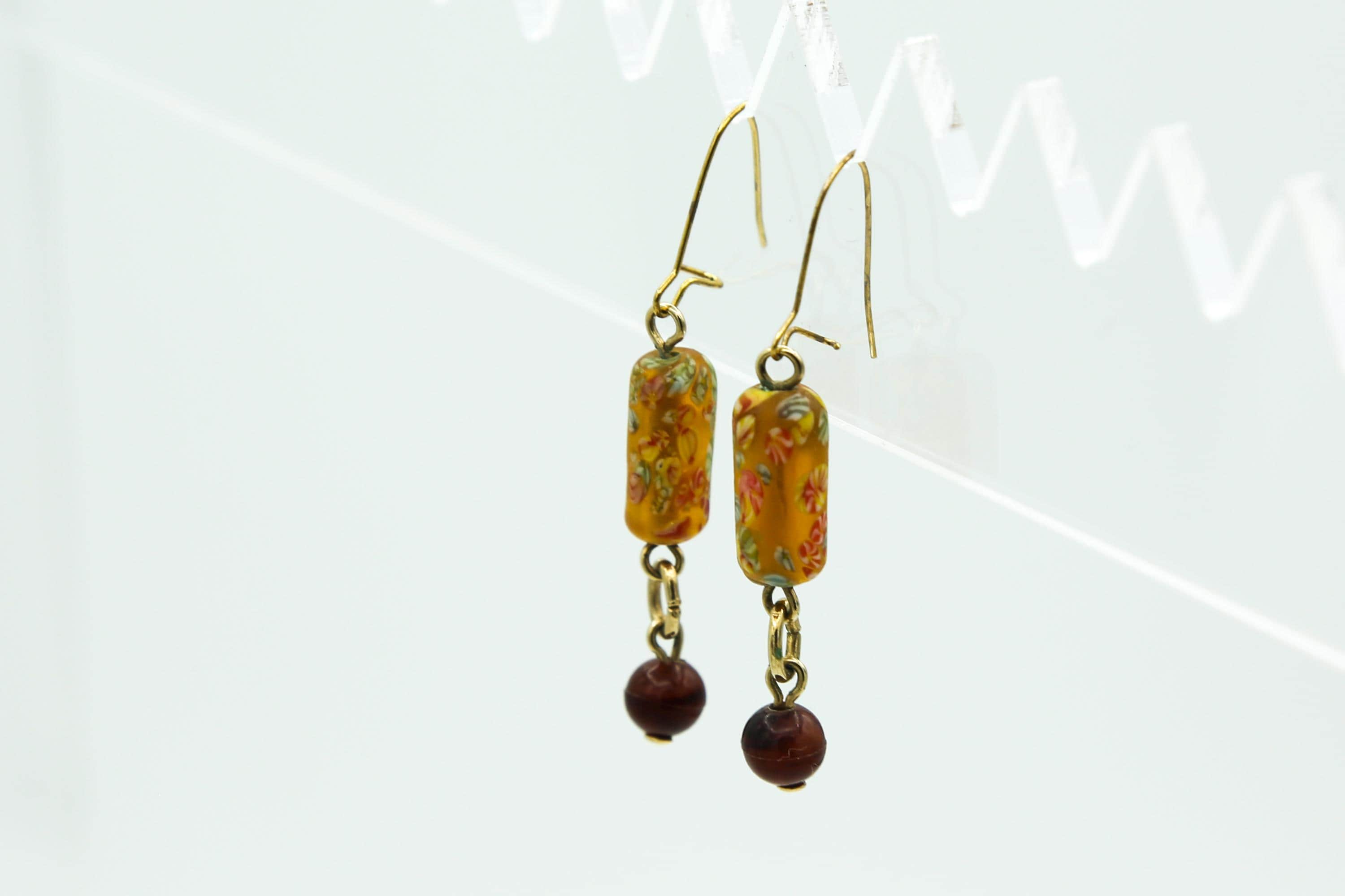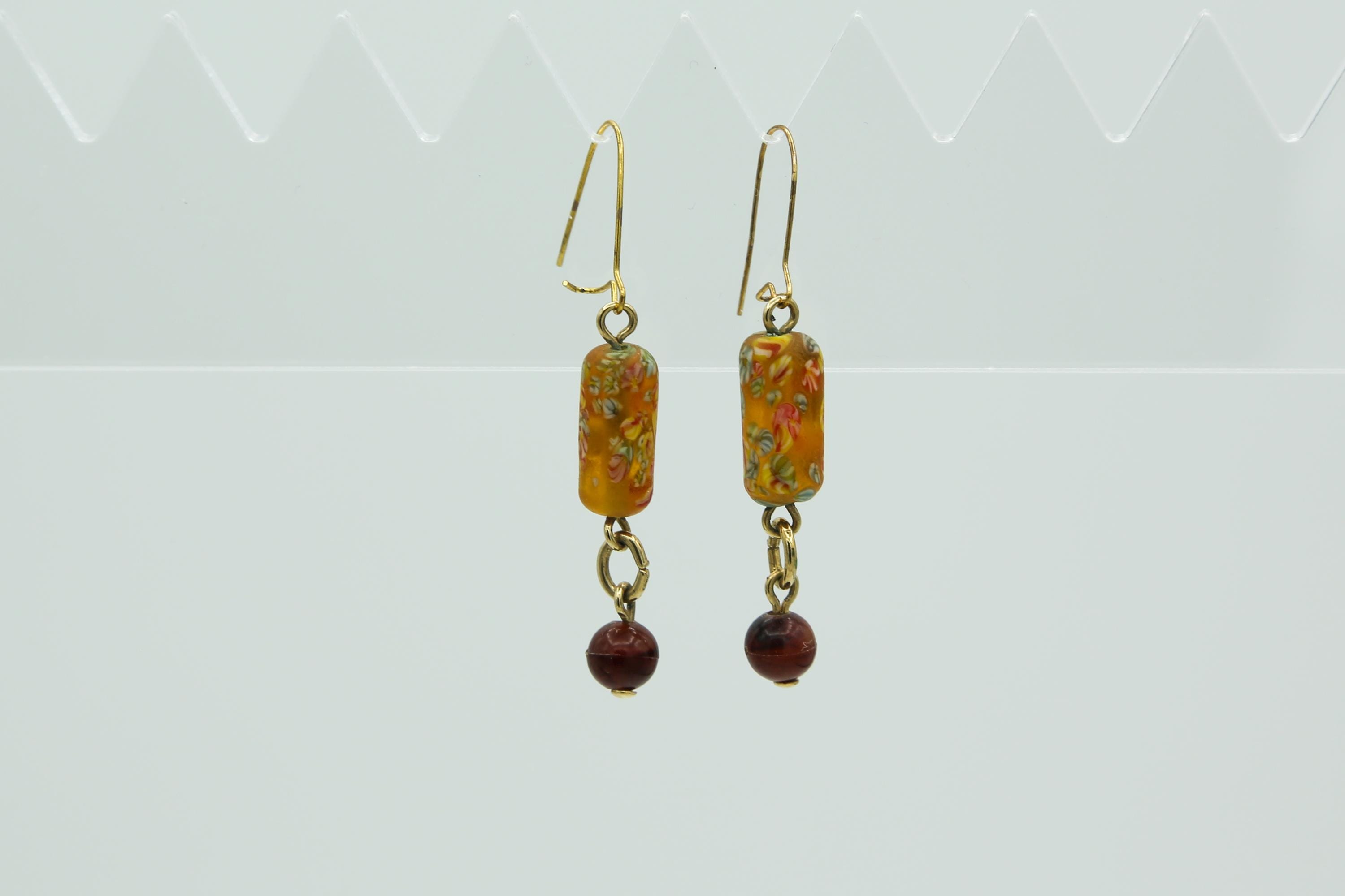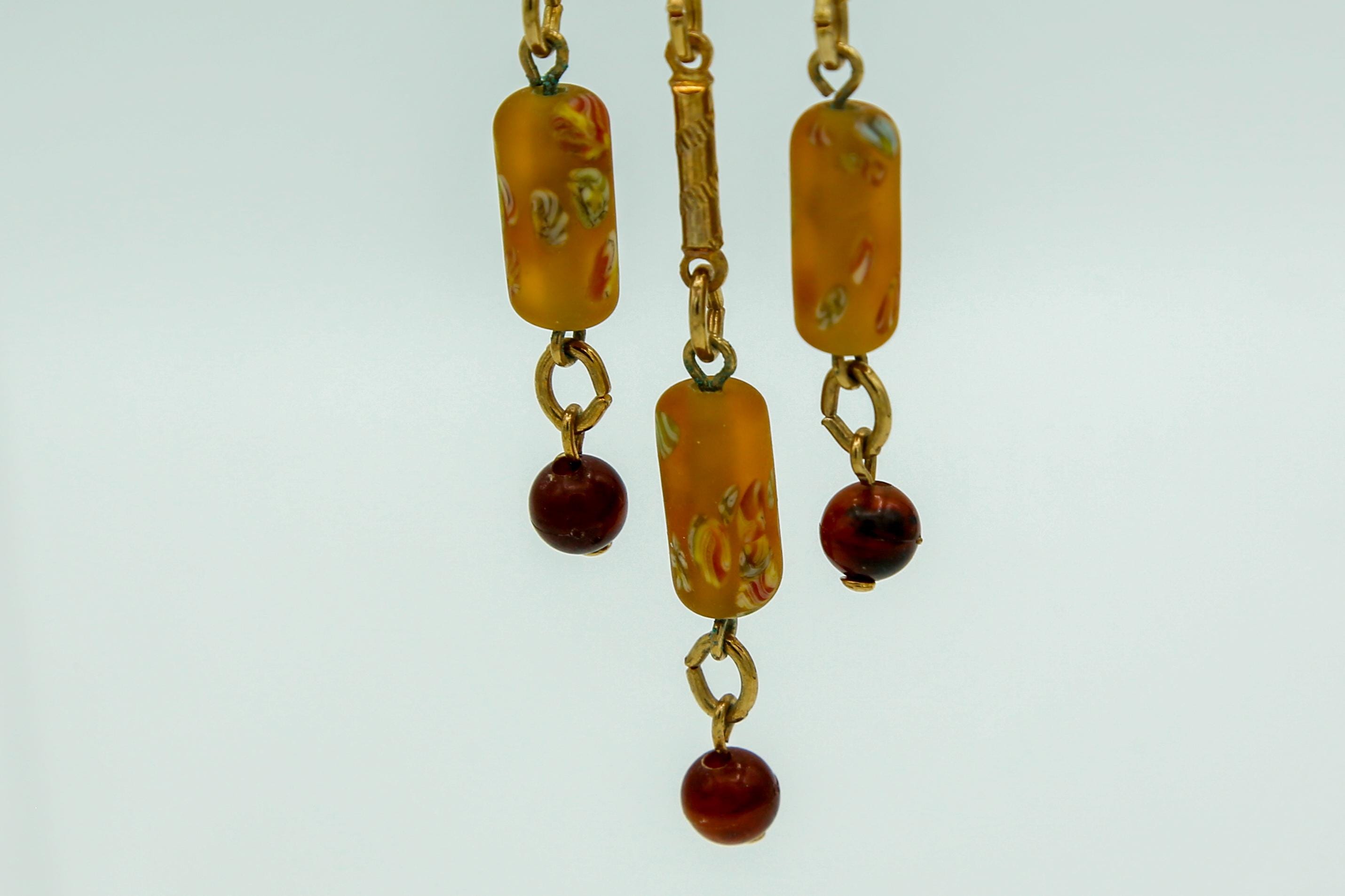 The earring drops measure about 1.25" long and hang delicately from thin gold tone ear wires.