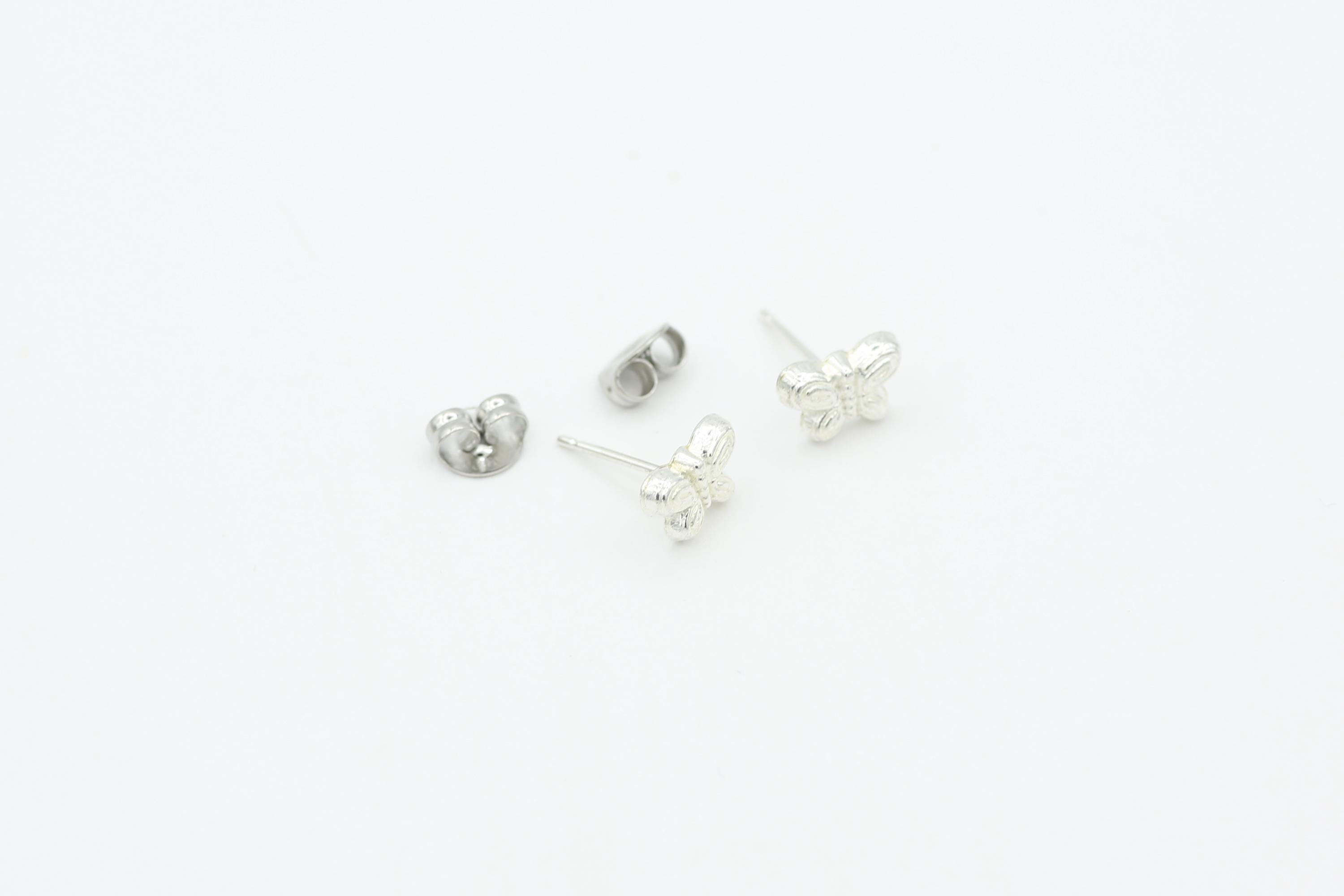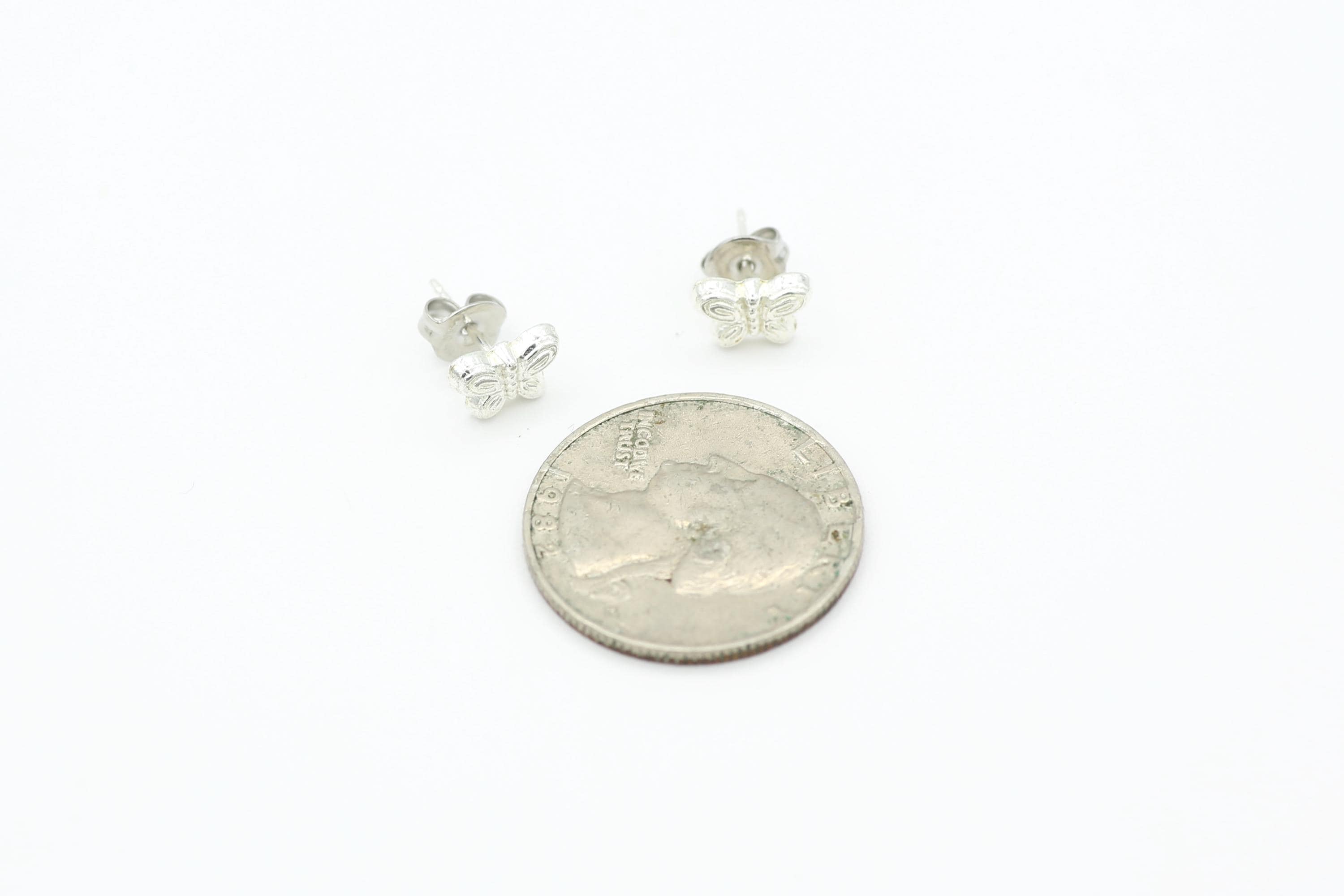 Vintage Itty Bitty Butterfly Earrings | NOS Silver Tone Studs | Spring Summer